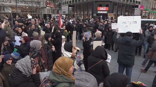 A protest in the Austrian capital Vienna against the US assassination of Iranian General Qasem Soleimani and Iraqi commander Abu Mahdi al Muhandes.