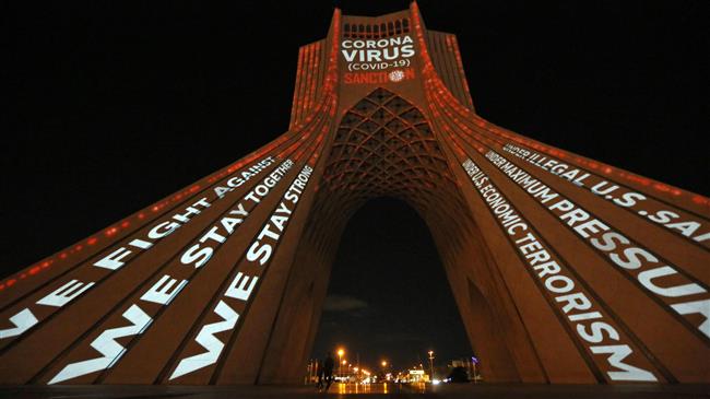 A video with messages urging solidarity and unity between cities and countries during the coronavirus crisis was projected on the walls of Tehran's Azadi Tower on Tuesday.