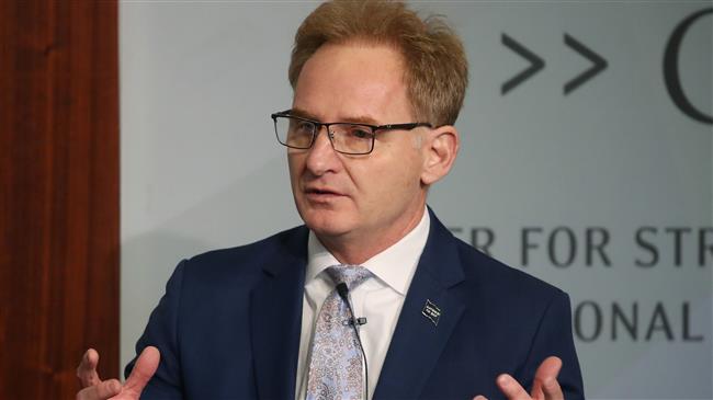 In this file photo taken on February 21, 2020, Acting US Navy Secretary Thomas Modly, participates in a discussion on defense strategy, and key initiatives in the FY2020 budget, at the Center for Strategic and International Studies, on February 21, 2020, in Washington, DC. (Photo by AFP)