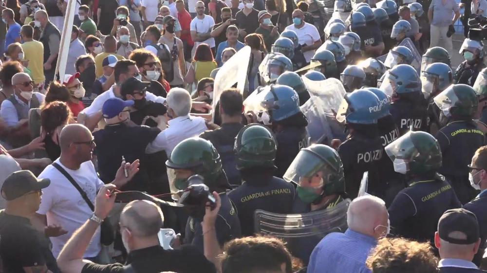 A group of protesters demonstrating against the leader of Italy's right-wing Lega Party Matteo Salvini clashed with police in Mondragone on Monday. The police responded with force, using batons on the demonstrators, leading to injuries.