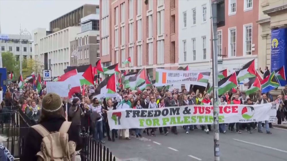 Demonstrators have gathered outside the Irish embassy in London to call on the Irish government to cut off all ties with the Zionist regime.