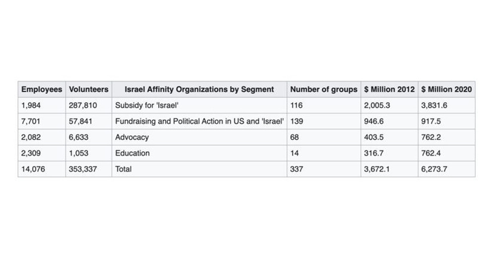 1. Many formal Zionist groups engaged in education, indoctrination, and radicalization are missing. For example, the American Zionist Movement (AZM), the official US affiliate of the World Zionist Organization, has 46 member organizations, only 13 of which appear in Big Israel’s data, leaving 33 unaccounted for.