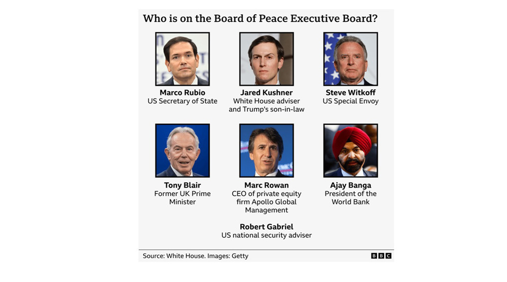 Blair, credited with shaping elements, joins a roster heavy on Trump allies and pro-Israel figures. Al Jazeera critiqued it as putting "rights abusers in charge."